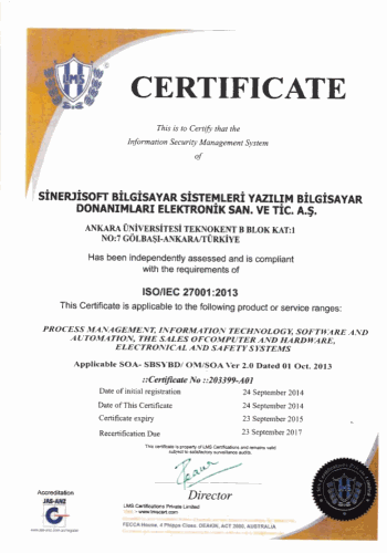 Sinerjisoft Bilişim Sistemleri Yazılım Bilgisayar Donanımları Elektronik Sanayi ve Ticaret A.Ş. 2013 yılından beri faaliyetini sürdürmektedir.